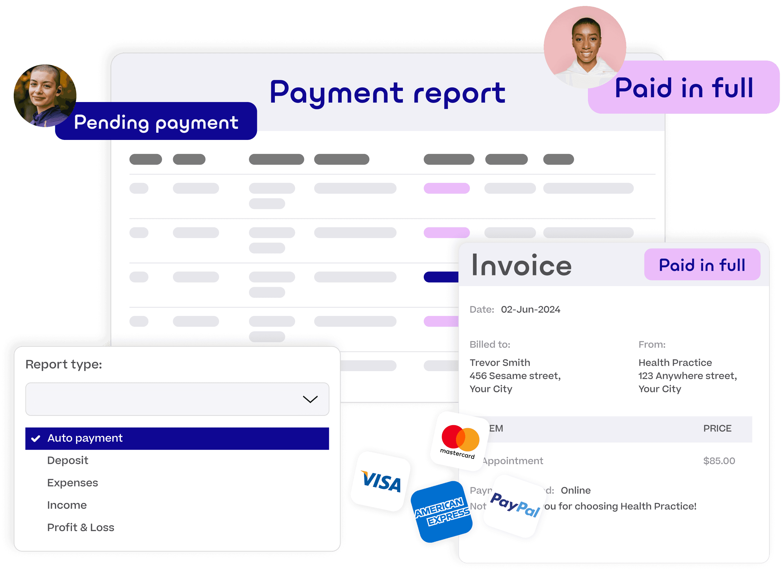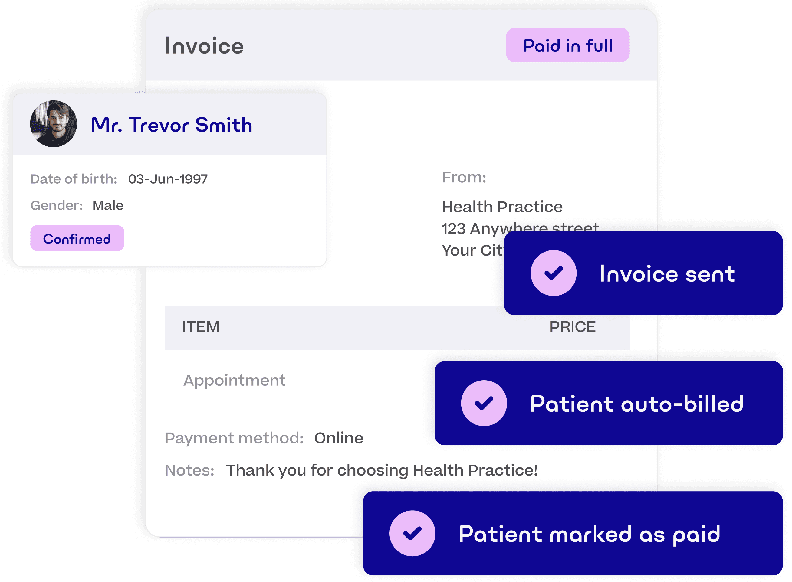 Add your patients' payments details just once, and you can automatically process payments at the time of an appointment without you needing to do anything.