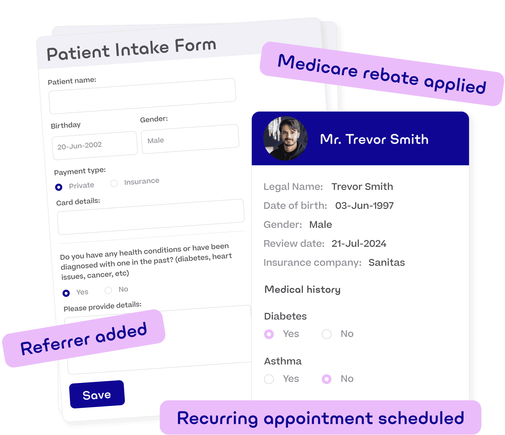 All you need to do is make an appointment and Halaxy automatically manages everything for you – the reminder, fee, invoice, patient record, clinical report, and even the payment. This way we remove your administration entirely, rather than just digitise it.